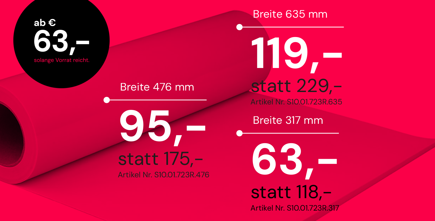 Ob feine Konturen, scharfe Kanten oder großflächige Beschriftungen – mit den hochwertigen Sandstrahlfolien von König setzen Sie jedes Detail perfekt in Szene. Unsere Aktionspreise machen den Einstieg oder Vorratskauf jetzt besonders attraktiv: gleiche Spitzenqualität, deutlich weniger Kosten. Sichern Sie sich Ihre Wunschbreite, solange der Vorrat reicht, und erleben Sie, wie präzises Arbeiten und wirtschaftliches Handeln perfekt zusammenpassen..