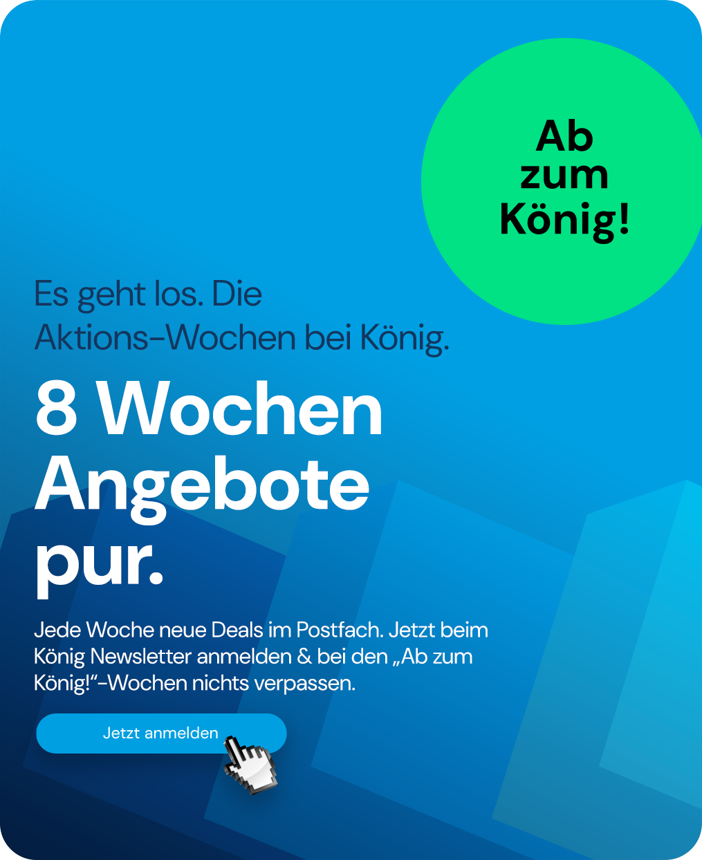 Tausende lagervorrätige Produkte, erfahrene Verkaufsberater im Innen- und Außendienst sowie Lieferung von heute auf morgen: Bei König profitieren Sie von echtem Serviceanspruch, geprüfter Qualität und einem Partner, der Ihre Branche kennt.