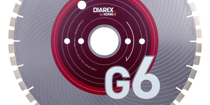 König bringt die Super G Diamanttrennscheibe für quarzarme Granite und ähnliche Hartgesteine in 2 Varianten auf den Markt. Einmal als Schnellschnitttrennscheibe im Durchmesser von 200 bis 2.500 mm mit weiten Zahnlücken bevorzugt für Tief- und Blockschnitte. Zum anderen mit engen Zahnlücken im Durchmesser von 200 bis 800 mm, welche sauberste Schnitte und gute Schnittkanten gewährleisteten.