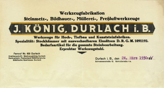 Im Jahr 1925 legt Josef König mit der Gründung seiner Werkzeugschmiede in Karlsruhe-Durlach den Grundstein für das Unternehmen König. Gemeinsam mit zwei Mitarbeitern nimmt er die Arbeit in einer kleinen Werkstatt auf – der Anfang einer bemerkenswerten Erfolgsgeschichte.