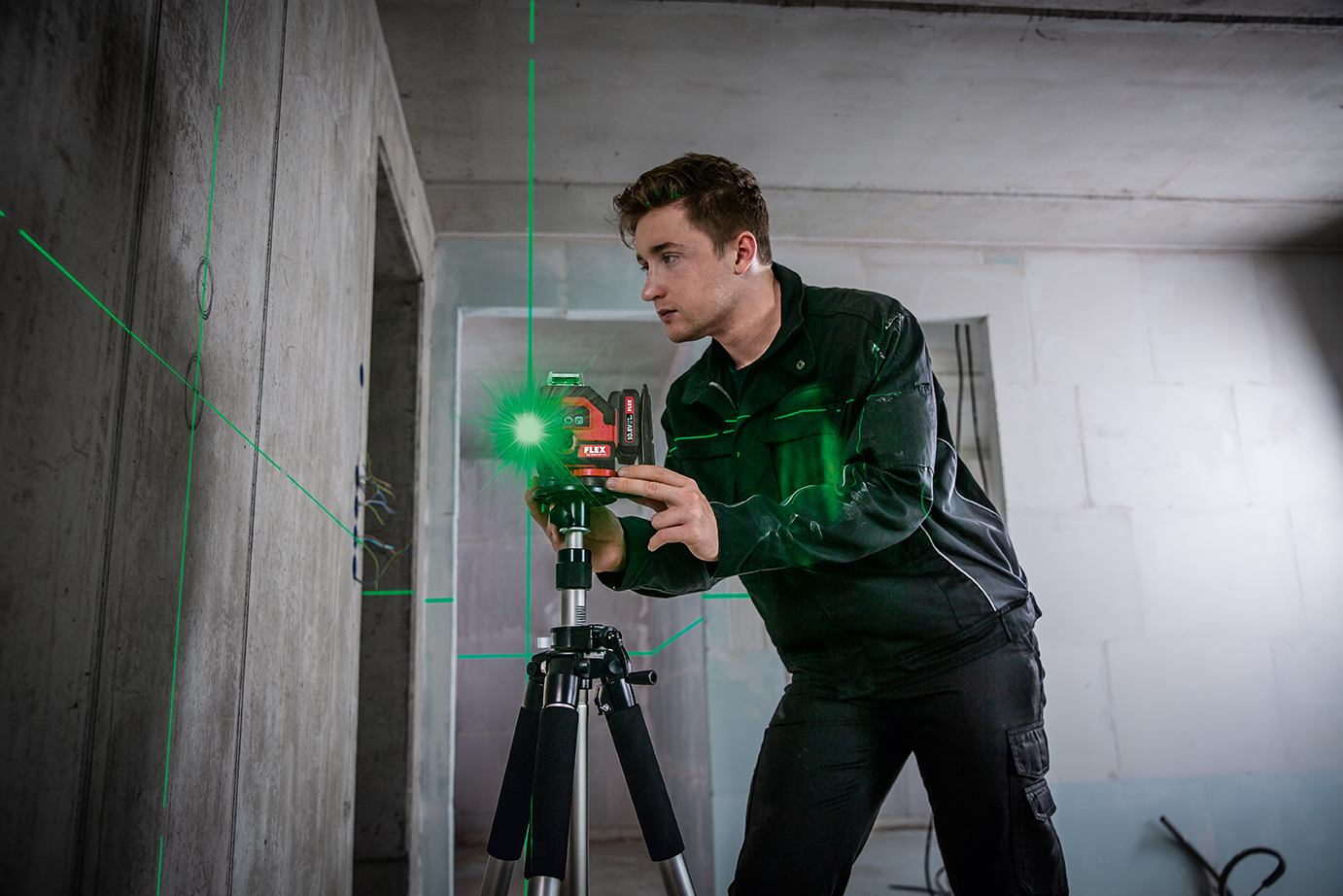 - durch vertikales und horizontales Nivellieren ist er bestens geeignet für den Innenausbau, zum Ausrichten von Türen, Fenstern, Bau- und Wohnelementen, Anlegen von Fliesenspiegeln etc. und für unterschiedlichste Anwendungen auf Baustellen