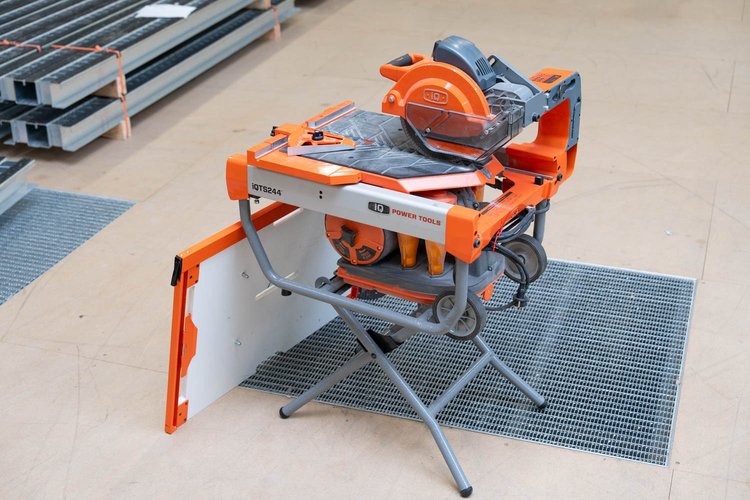 - Lieferumfang: 1x Fliesen-Trockensäge iQTS 244 SET (inkl. Trennscheibe Universal Q-Drive ø 254 mm), 1x Verlängerungstisch und 1x Trennscheibe Fusion Q-Drive ø 254 mm