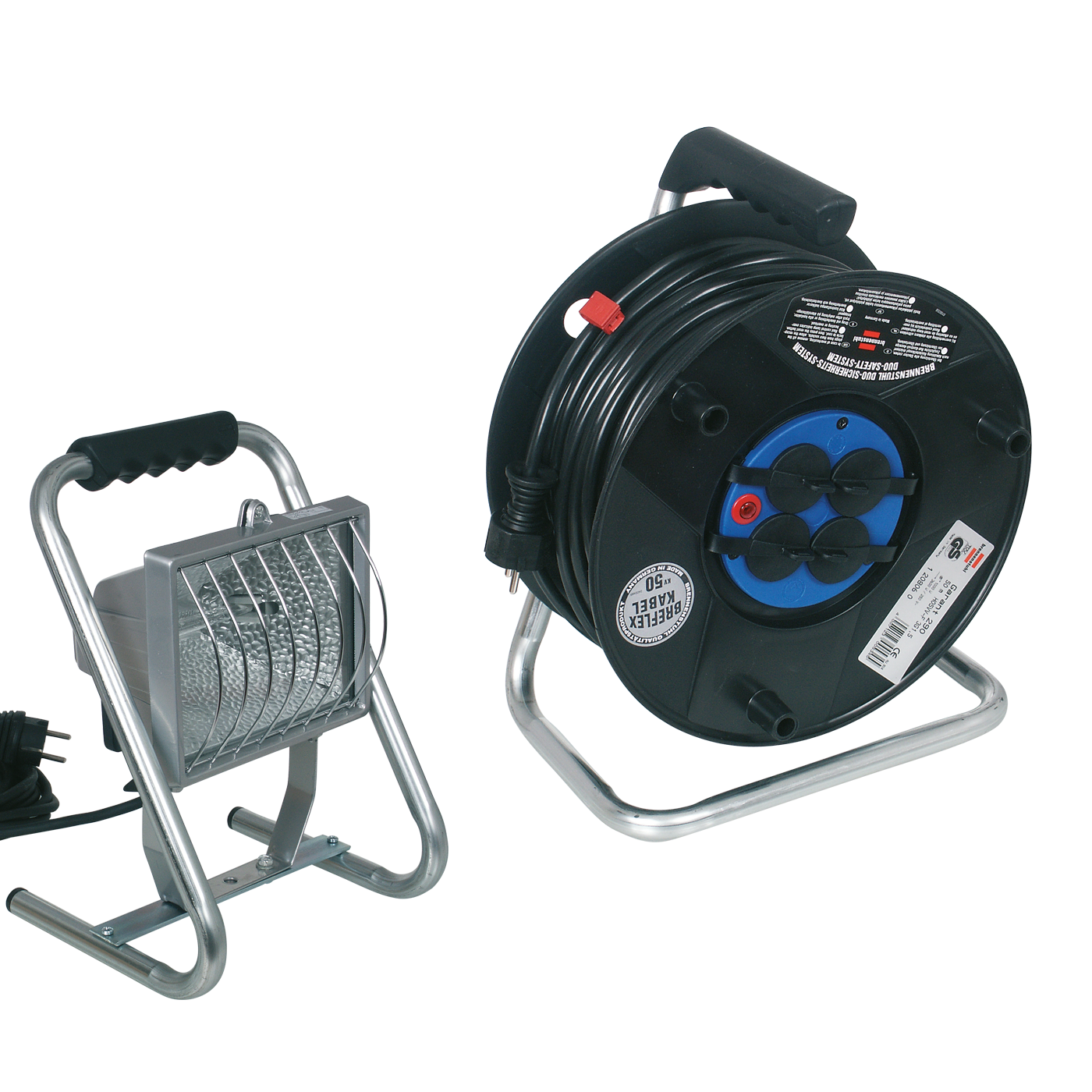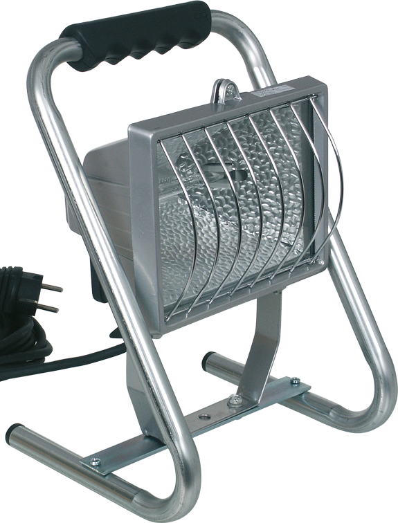 - Tragbarer Arbeitsstrahler mit umlaufendem Tragegriff und Kabelaufwicklung