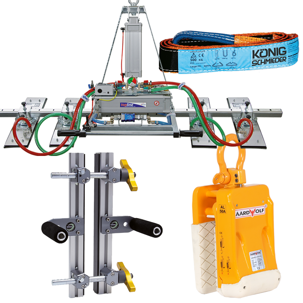 - zum mühelosen und zeitsparenden Versetzen und Abräumen von Grabmalen und Einfassungen