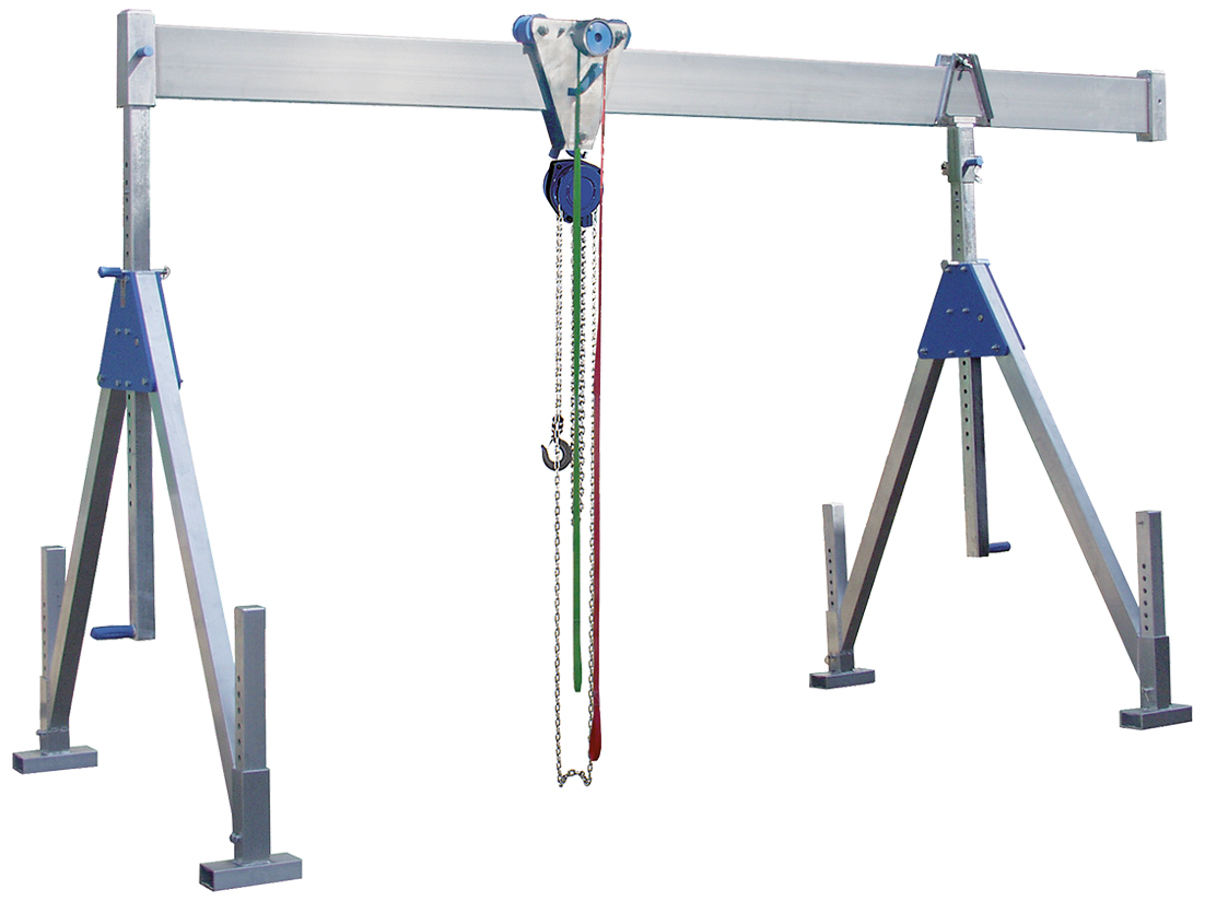 - verstellbare Füße ermöglichen den Einsatz des Portalkranes auch an Hanglagen