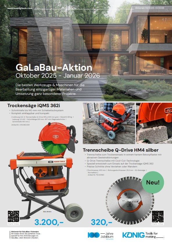- Speziell entwickelte Trennscheiben zum Einsatz auf der Trockensäge iQMS 362