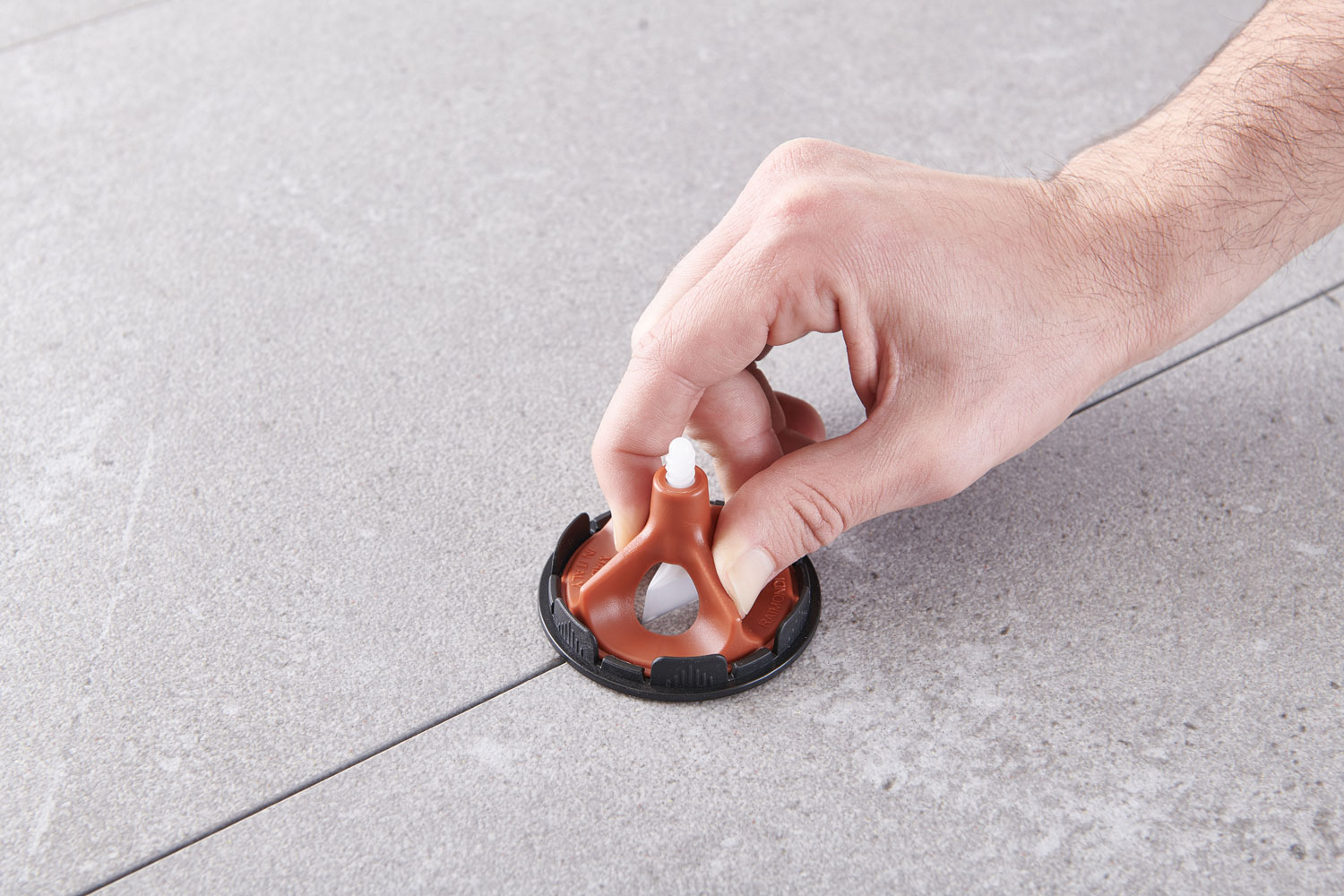 - einfache Benutzung: Kappe in das Clip-Gewinde nach unten drehen, nach Erreichen der Fliese mit der Kappe festziehen um die Fliesen zu nivellieren