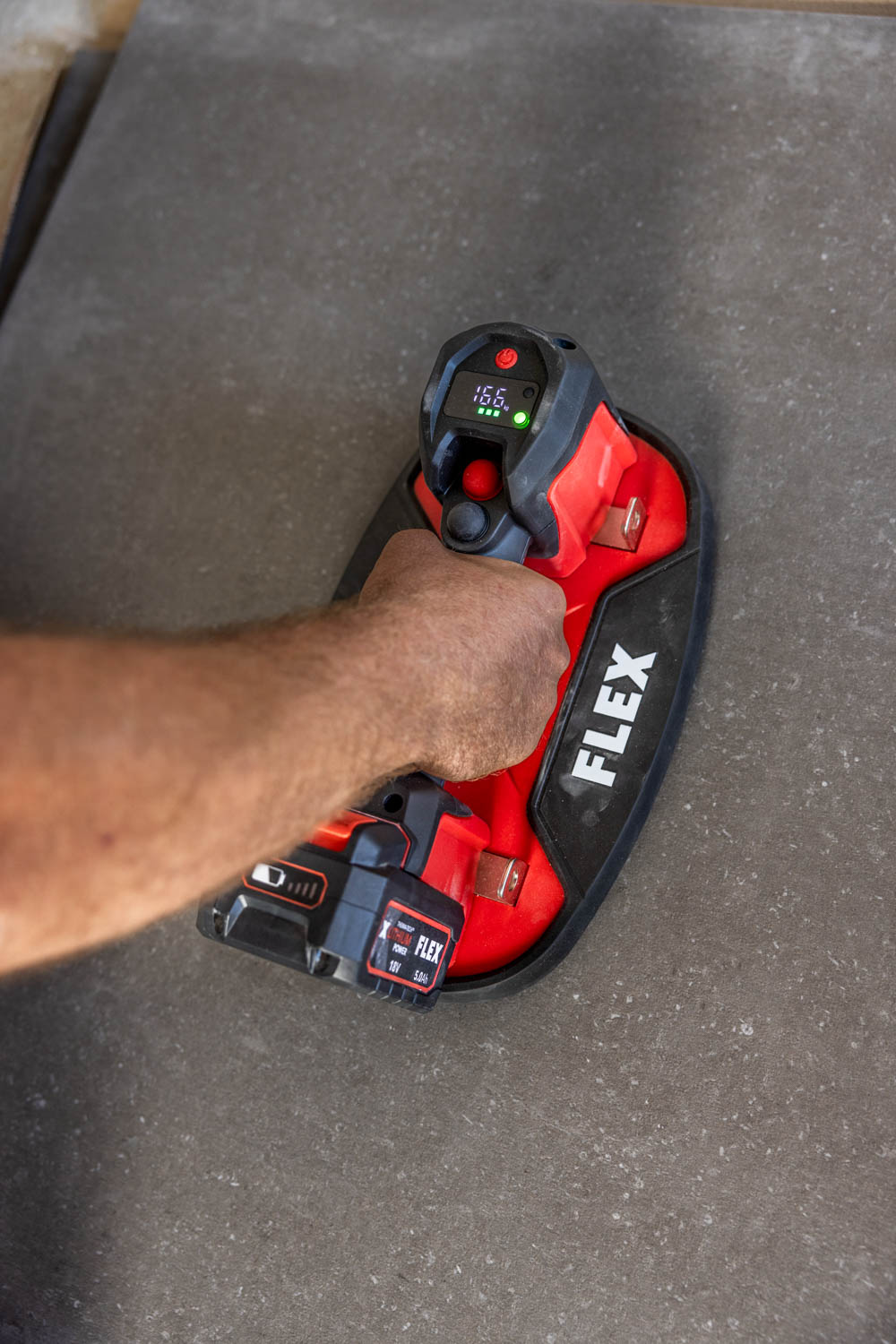 - mit dem ergonomisch gestalteten, elektrischen FLEX Grabo 18.0 Akku-Vakuumheber lässt sich mühelos nahezu jedes Objekt heben, bewegen und präzise platzieren