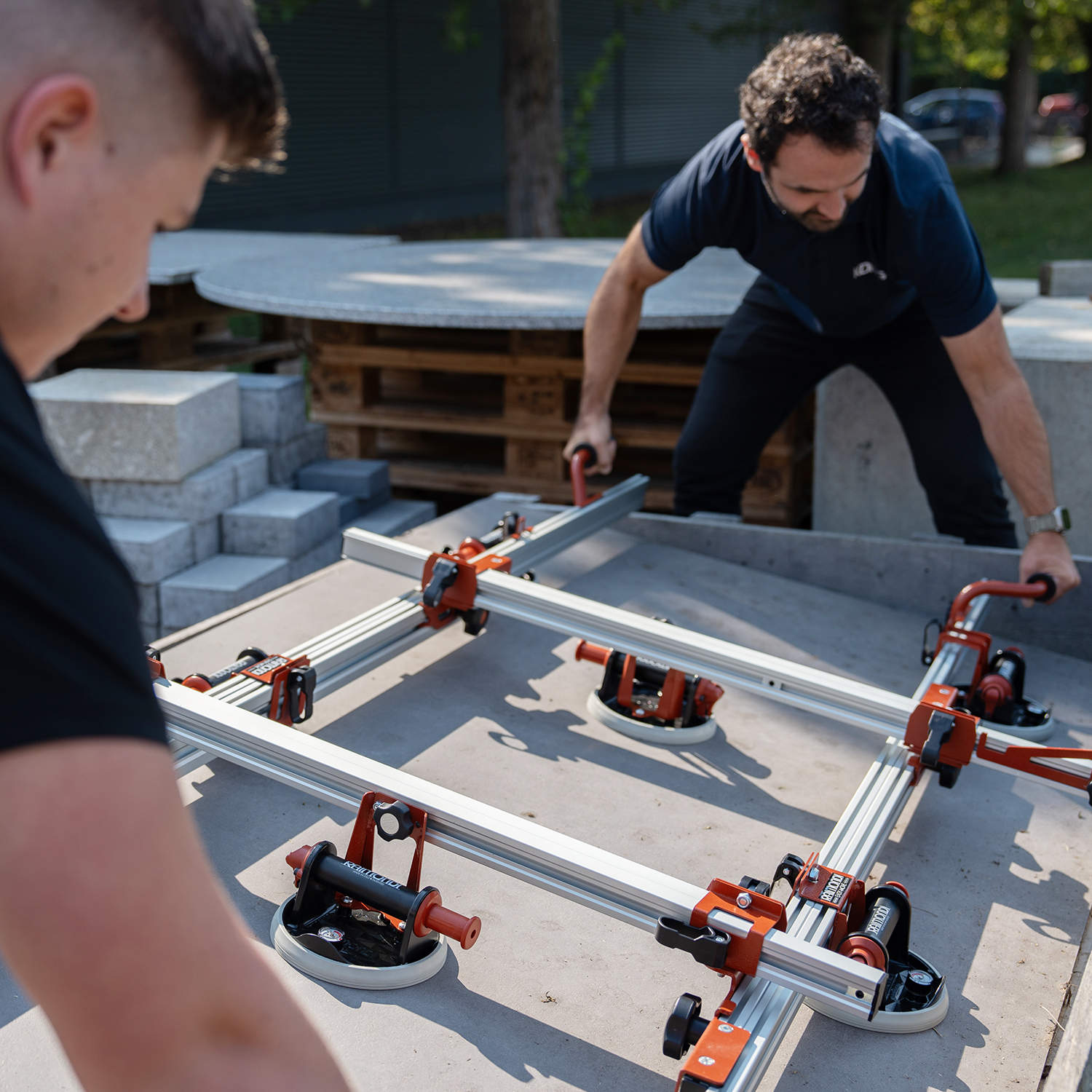 von Großkeramik. Die Handhabung von großen Keramiken stellt uns vor neue Herausforderungen. Wir haben Lösungen die sich genau mit dem Thema auseinandergesetzt haben. Gesundheitsorientiertes und wirtschaftliches Transportieren und Versetzten steht im Vordergrund.