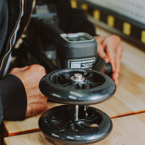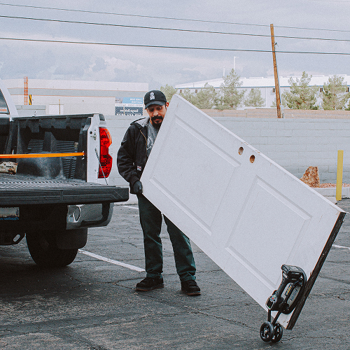 - zwei große, robuste gummierte Räder sorgen für ein müheloses Rollen sperriger Materialien wie Steinplatten, Glasscheiben, Arbeitsplatten und übergroßer Fliesen