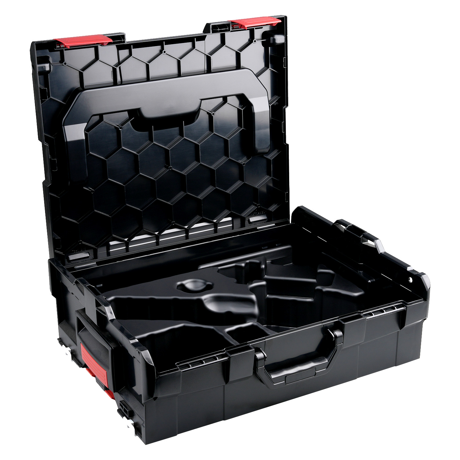 Mit dem robusten Aufbewahrungs- und Transportsystem L-BOXX® aus schlagfestem Kunststoff kommen Werkzeuge, Zubehör und Verbrauchsmaterial einfach und bequem zum Einsatzort. Durchdachte Einlagen sorgen für Ordnung und Übersichtlichkeit, ergonomisch geformte Griffe und zusätzliche Griffschalen für flexibles und komfortables Handling. Das unschlagbar einfache Verklicken und Trennen der verschiedenen Transportboxen optimiert den Transport im Verbund. Passt perfekt und ohne Adapter zum TÜV-geprüften Fahrzeugeinrichtungssystem von Sortimo. Belastungskapazität pro L-BOXX® von bis zu 25 kg, Transport im Verbund bis 40 kg, der Deckel ist bis 100 kg belastbar. Spritzwassergeschützt. Ohne Einlage, mit zusätzlichem Frontgriff.