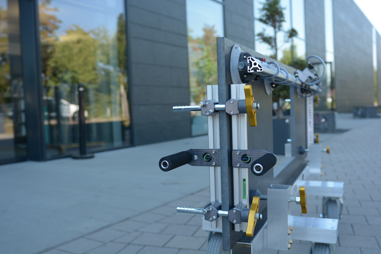 - Ausführung Slider: 4 verstellbare, manuelle Vakuumsauger mit dreifacher Dichtlippe - auch für geflammte Oberflächen, stufenlos längenverstellbar von 130 - 230 cm